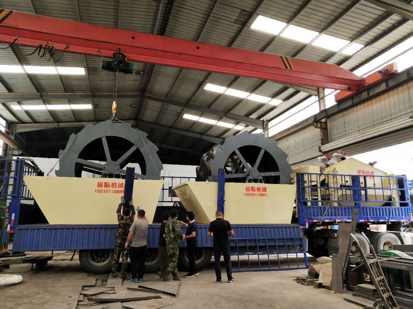 發(fā)往重慶的1530脫水細砂回收機和兩臺3020輪式洗砂機